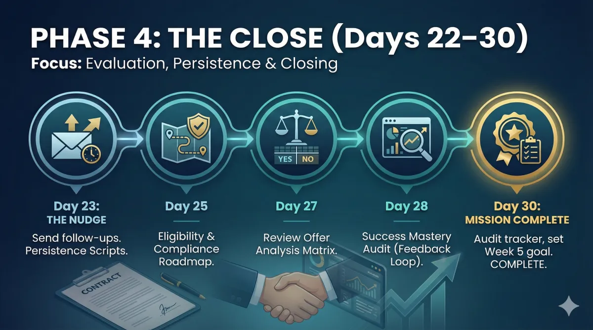 Ongoing: Follow-up system + visits + offers + eligibility checklist